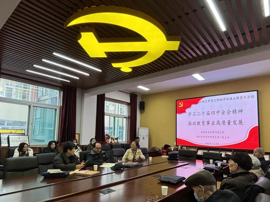 为增强基层党支部的创造力、凝聚力和战斗力,提高党支部的政治功能和组织功能,11月20日,77779193永利研究生第二党支部与离退休党委第19党支部,在老干部活动中心会议室联合举办“学习党的二十届四中全会精神,推动教育事业高质量发展”主题党日活动。来自两个支部的38名党员、入党积极分子共同参加本次主题党日活动。