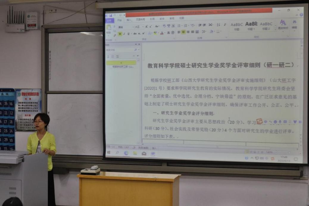 另外,徐教授对学籍的管理、公司的培养规定、学位的申请、奖助体系等多个方面也进行了详细的讲解。告知同学们要了解自己所学专业的课程体系、课程学分,提倡大家多选修一些专业相关的课程,提高自己的教育学、心理学素养。