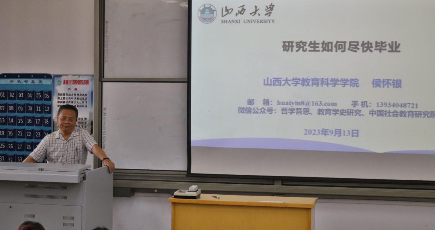 虽常言“轻舟已过万重山”,但我们的学习生活仍道阻且长。踏上了研究生的新征程,同学们在拥有了更多选择的同时,也变得更加迷茫。为了帮助同学们快速的适应研究生生活,找到学习的方向,侯怀银教授于2023年9月13日下午15:30在文科楼101为同学们开展了《研究生如何尽快毕业》的专题讲座。