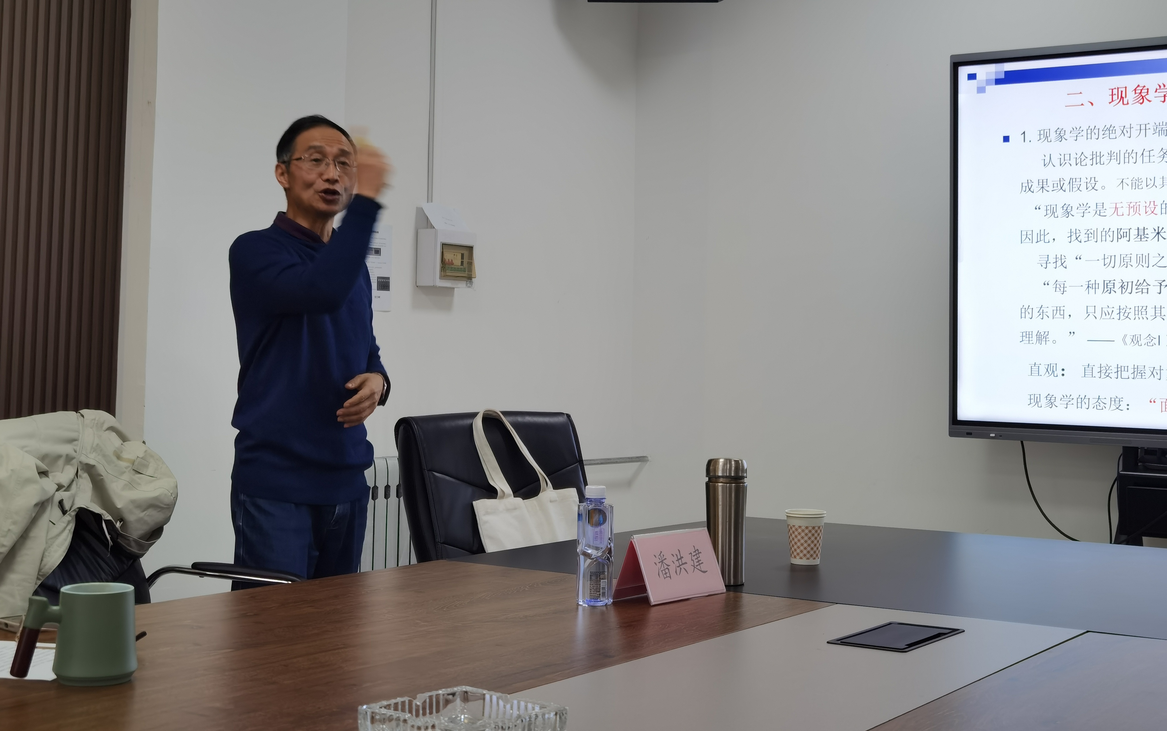 在互动提问环节,潘教授对师生们提出的问题给予了耐心细致的解答。尤其是刘庆昌经理和潘教授的对话与讨论将本场讲座的气氛推向了一个高潮。刘经理指出,现象学作为一个艰深的话题,却能吸引如此多的人为之着迷,这就是现象学的魅力!现象学既是现象学家们为人类奉献的智慧精华,也是现象学家们为后来者树立的思想标杆。以此为参照,未来的研究就有了更多的可能。